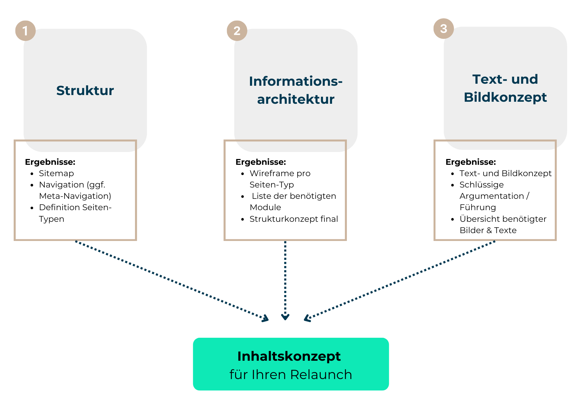 Ein Relaunch ist eine hervorragende Möglichkeit, neben der Technik und dem Webdesign bzw. dem UI/UX auch den Inhalt der Online-Präsenz auf den Prüfstand zu stellen. Hierfür empfiehlt es sich, ein dediziertes Inhaltskonzept für den Relaunch zu erarbeiten.