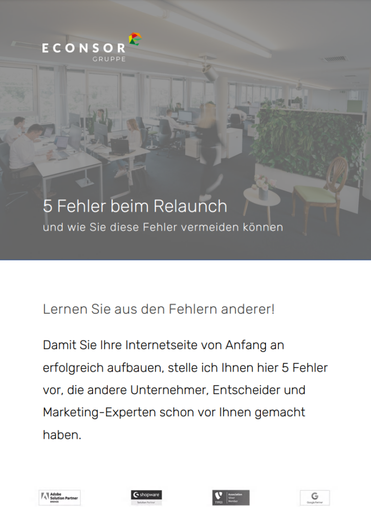 Sichern Sie sich kostenlos hilfreiche Tipps unseres Experten. Lernen Sie die 5 wichtigsten Fehler zu vermeiden. Profitieren Sie von der Erfahrung aus über 500 Projekten und erhalten Sie konkrete Empfehlungen zu: