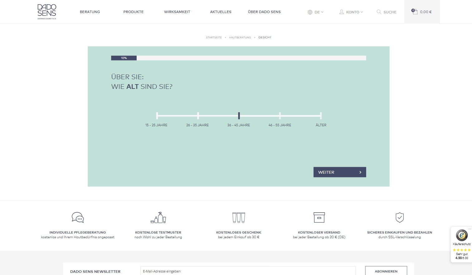 Passende Hautberatung durch einen Online-Verkaufsberater für ein optimiertes Guided-Selling-Kauferlebnis. Für Dado Sens entwickelt ECONSOR ein individuelles Beratungstool. In der geführten Kaufberatung werden Produkte anhand von vorgefertigten Fragen und Antworten gefiltert. So findet der Kunden genau die Pflegeprodukte, die optimal zu seinem Hautbild passen.