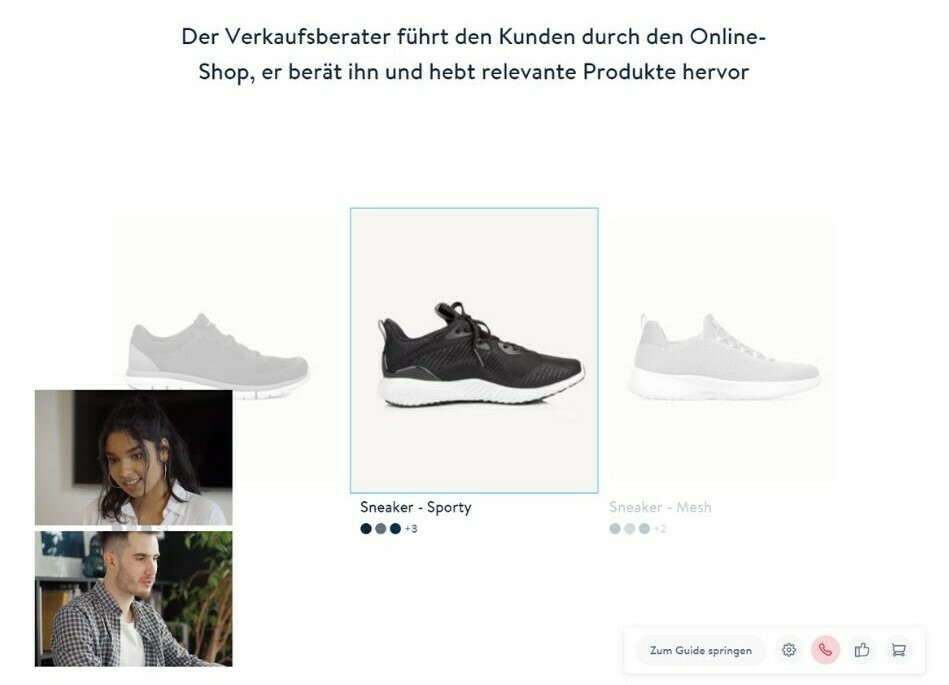 Guided Shopping geht einen innovativen Schritt weiter: Beim Guided Shopping in Shopware können Kunden ein persönliches Beratungsgespräch direkt im Online-Shop anfordern. Die Besonderheit: Der direkte Kontakt zu einem realen Verkaufsberater.
