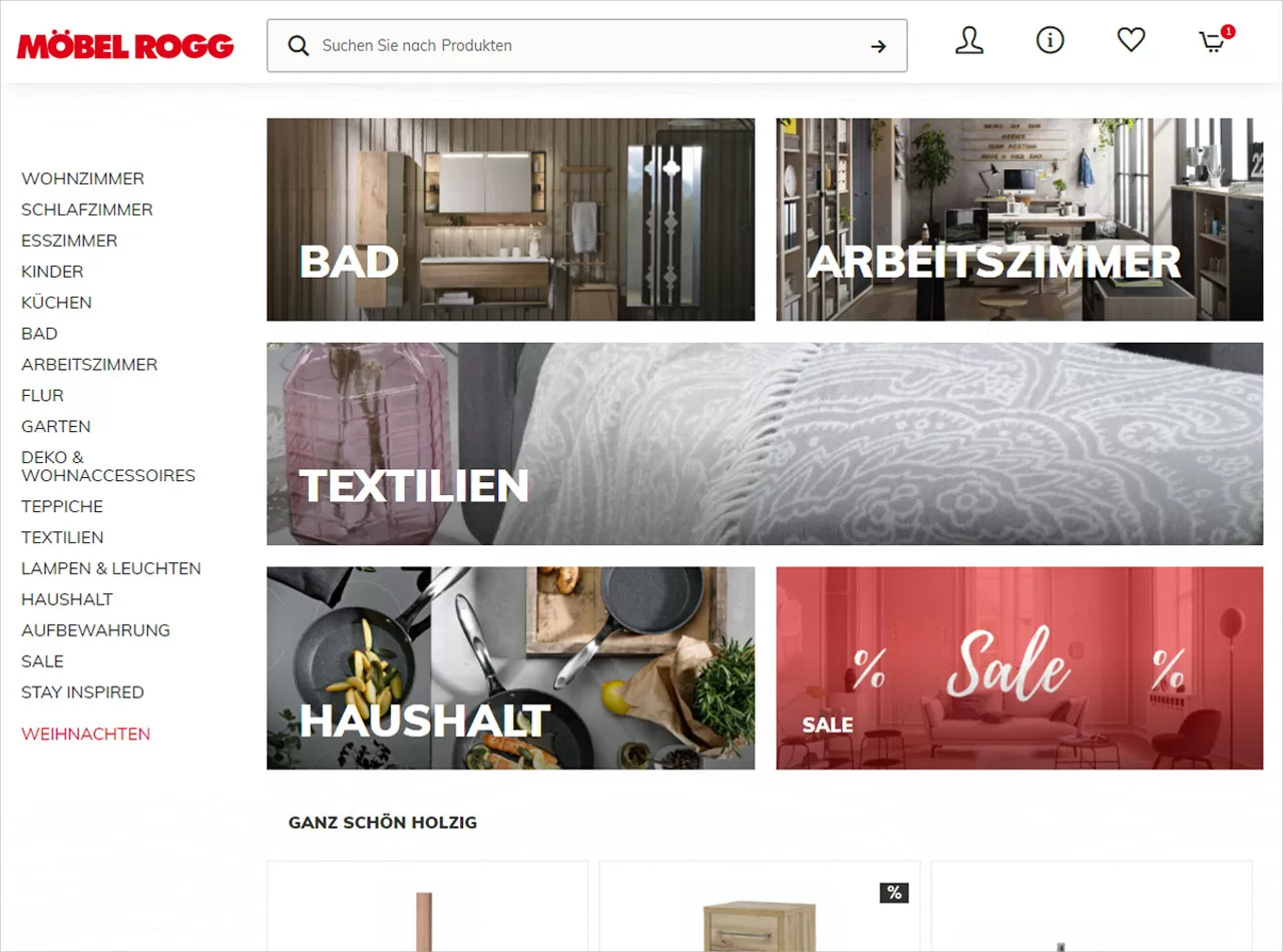 Ein digitales Einkaufserlebnis mit durchgängiger Customer Journey in repräsentativem Design: So präsentiert sich der neue Shopware-Online-Shop von Möbel Rogg. Das Unternehmen ist seit über 80 Jahren am Markt und gehört zu den etabliertesten Möbelhäusern Süddeutschlands. Das spiegelt sich nun auch in Punkto E-Commerce wider – dank modern designter Marken- und eindrucksvoller Bildwelten. Durchdachte Funktionen optimieren die UX/UI, individuell programmierte Schnittstellen erleichtern die Pflege.