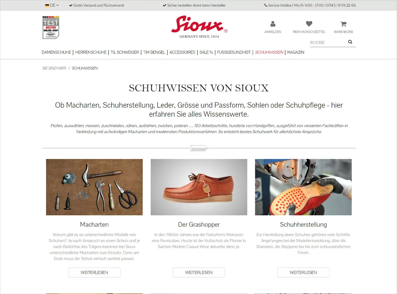 Neben der technischen Optimierung wurden auch sämtliche Inhalte für Suchmaschinen optimiert. Die Optimierungen erfolgten dabei in direkter Absprache mit dem Marketing-Team von Sioux, die von unseren Experten außerdem für die zukünftige Weiterbetreuung geschult wurden.