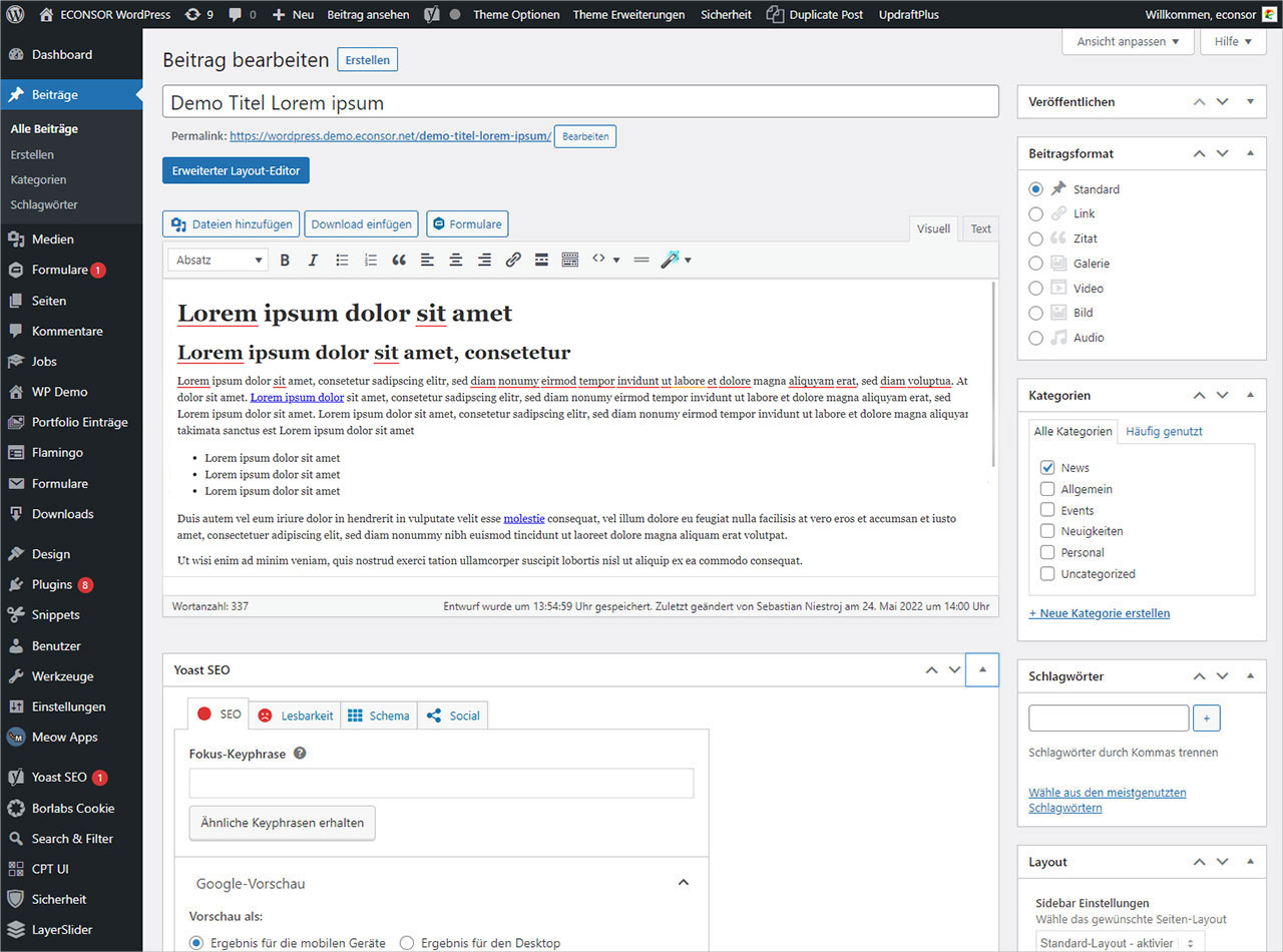 Mit unserer WordPress-Demo erhalten Sie Einblicke in das Front- und Backend einer für Sie bereitgestellten WordPress-Instanz.